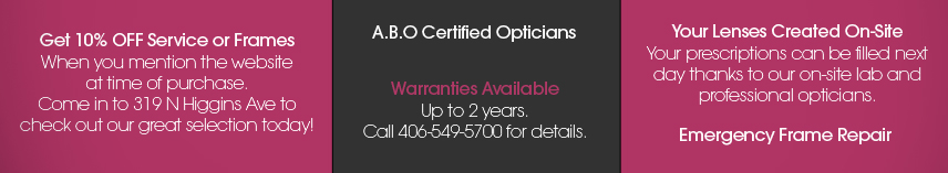 Mention this website at the time of purchase and receive 10% off of your new frames or service only at Specticca Optical Boutique - 319 North Higgins Avenue in Missoula!